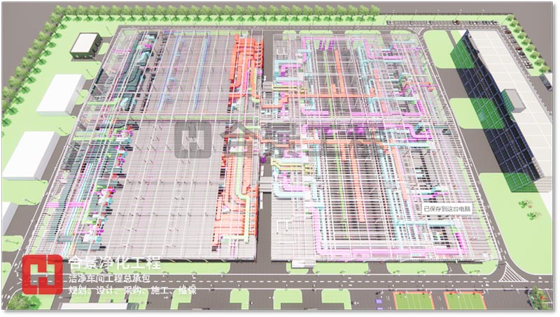 BIM 技術(shù)可應(yīng)用于工程項(xiàng)目規(guī)劃、設(shè)計(jì)、施工、改建、運(yùn)維等范圍,為產(chǎn)業(yè)鏈貫通、工業(yè)化建造和建筑創(chuàng)作提供技術(shù)保障。合景智慧建設(shè)(廣東)有限公司在潔凈廠房工程建設(shè)中,以BIM技術(shù)為全周期模擬,對(duì)工程全局,即潔凈環(huán)境、人流物流、暖通、電氣工程、整廠能耗、質(zhì)量、安全等方面提供方案優(yōu)化和科學(xué)決策提供依據(jù),與各專業(yè)協(xié)同工作、項(xiàng)目的虛擬建造和精細(xì)化管理,為工業(yè)潔凈室建設(shè)提質(zhì)增效、節(jié)能環(huán)保創(chuàng)造條件,虛實(shí)結(jié)合,賦能項(xiàng)目,打造交鑰匙項(xiàng)目。
